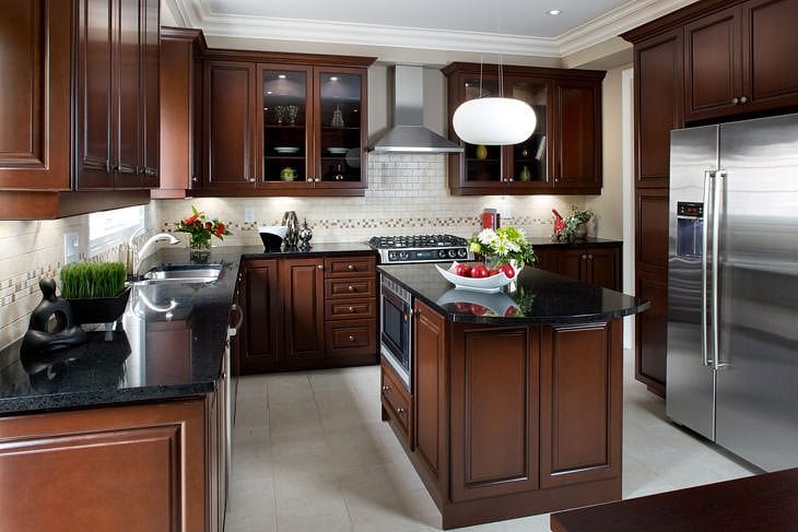 The Mediterranean kitchen displays an emphasis on colors and more natural ingredients. High-quality wood like cherries makes a quality cabinet, while the backsplash may be terra-cotta or tile. This design is the most common style in the Italian kitchen.