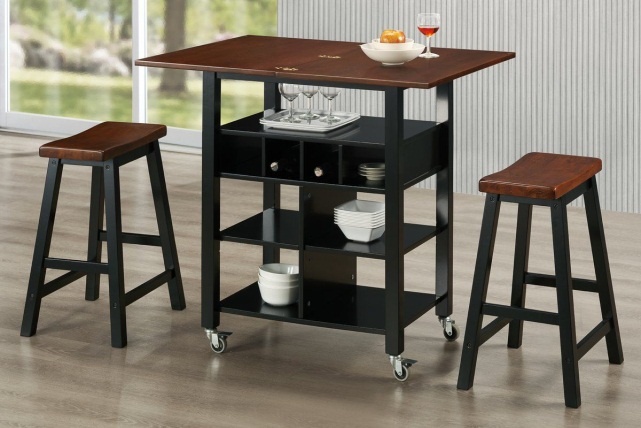 This kitchen island set offers complete furniture for the cooking area. It is so multi-functional. When you are not using it for preparing the food in the kitchen, you can roll it to the dining area like a table.