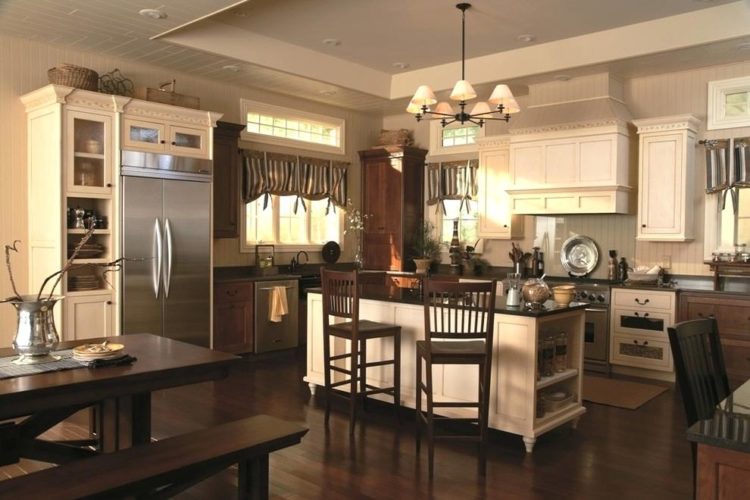 You cannot rely on traditional furniture. You do not have to worry because you can buy modern equipment with traditional nuances. This will not detract from the pleasant atmosphere in your kitchen.