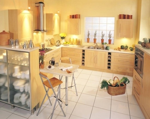 Some spotlights give some dramatic effects to the cabinet and wall design. There is a number of plant accessories in this kitchen. The plants make this kitchen more alive while the sunny yellow color makes it more vivid.